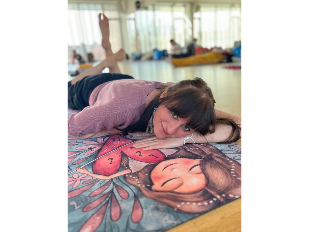 Podložka na cvičenie je potlačená autorskou ilustráciou LucLac
