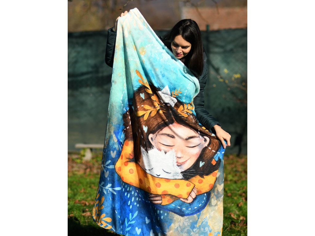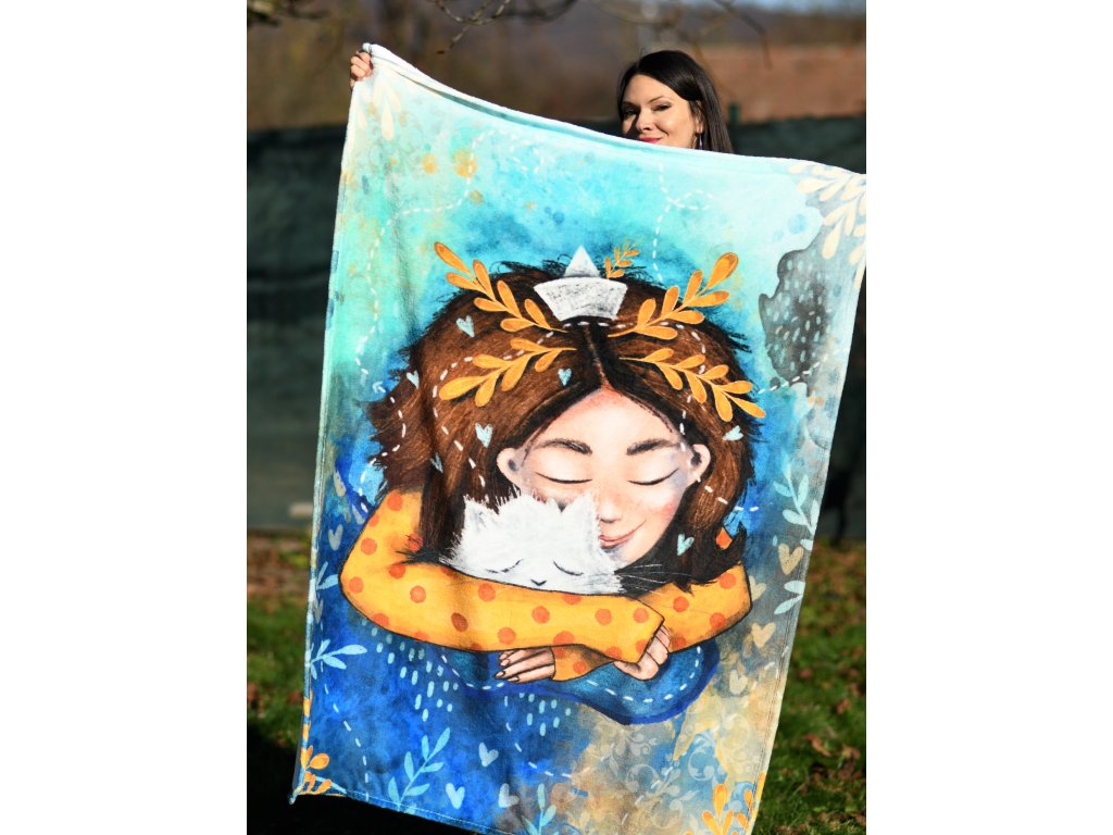 Deka s autorskou ilustráciou s motívom mačky a dievčatka