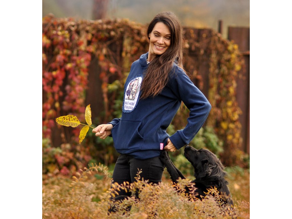 Mäkkučká fleecová modrá mikina s autorskou potlačou