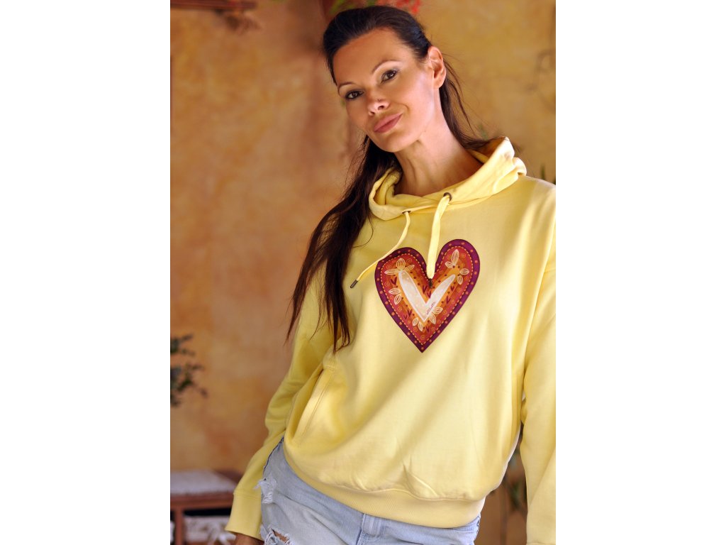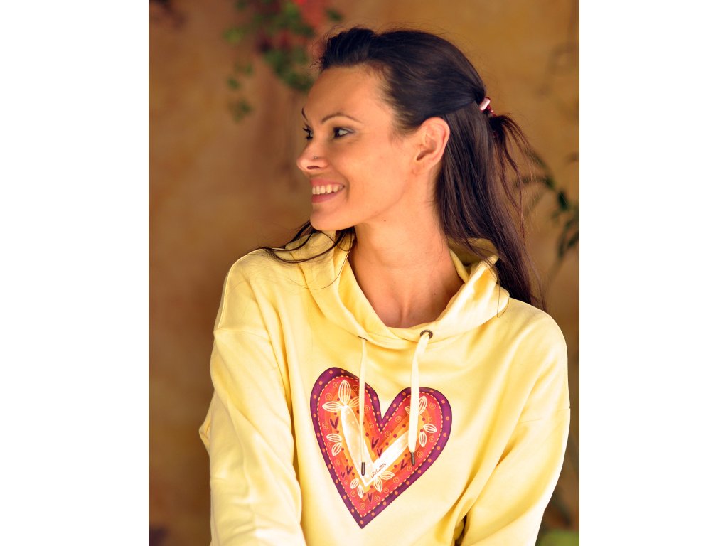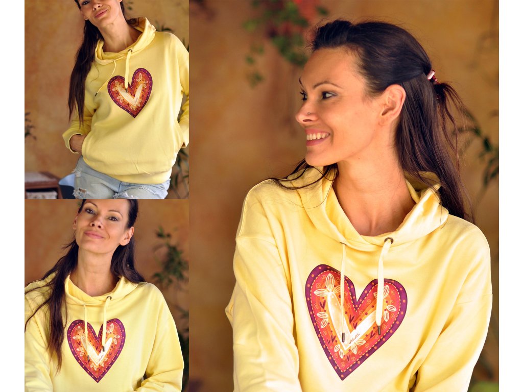 Mikina vo farbe vanilky - svetložltá s aplikáciou autorskej ilustrácie