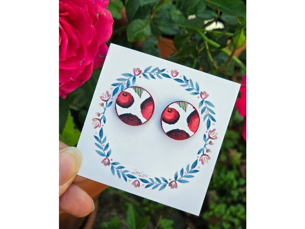 Aplikovaná autorská potlač s motívomčerešní na drevenom podklade