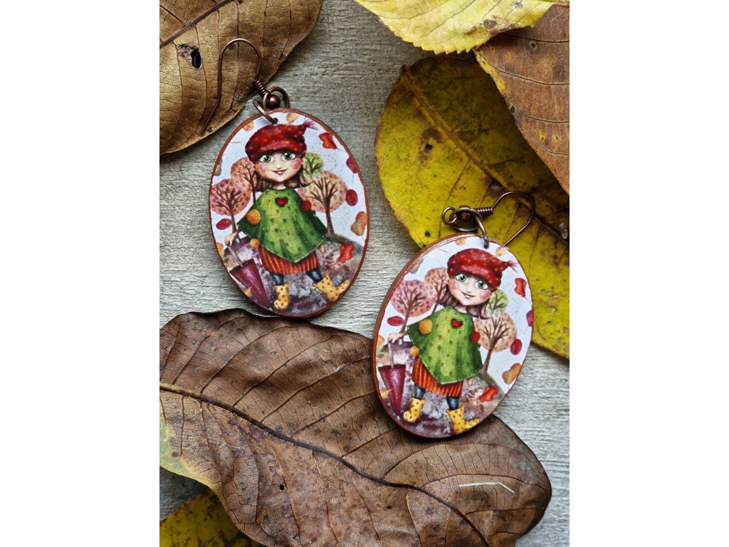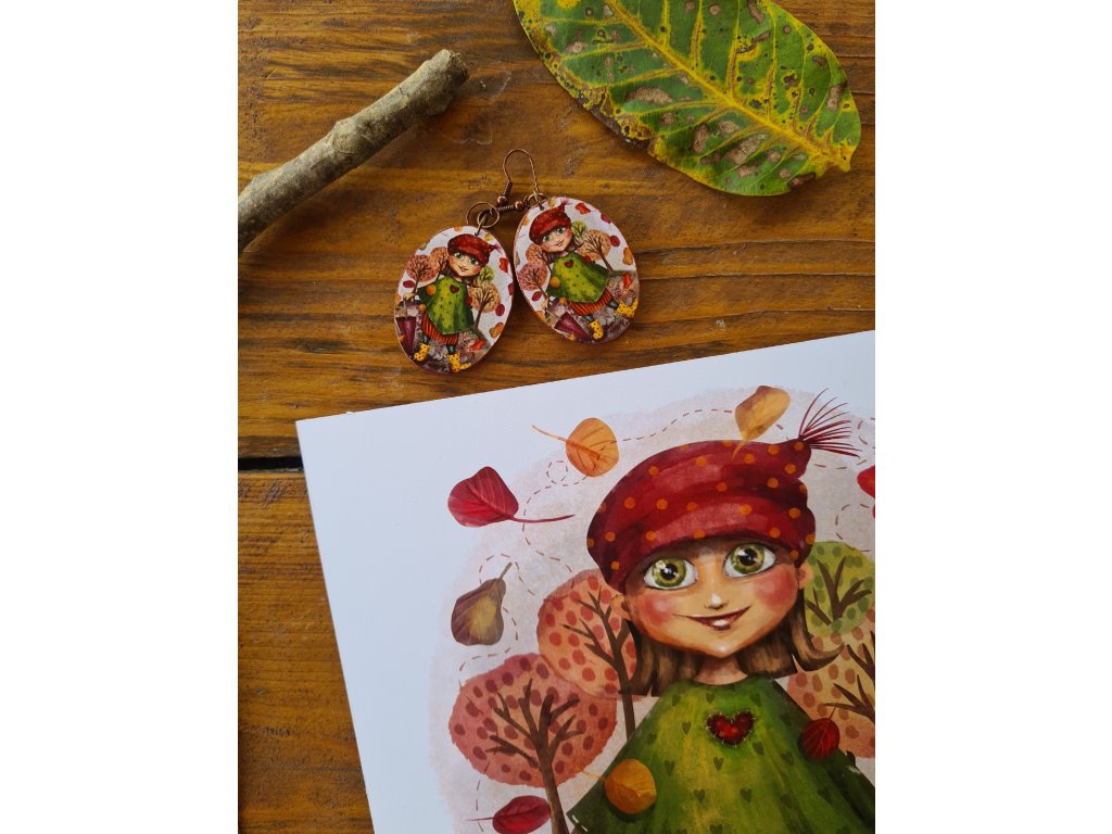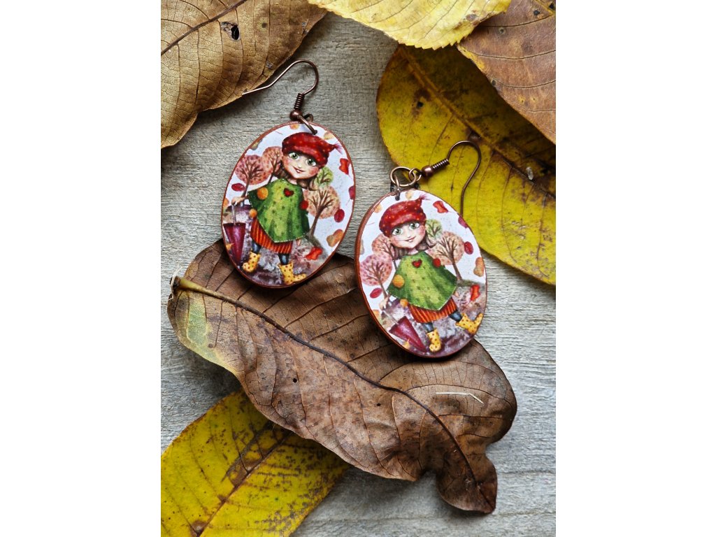 Výrazné drevené náušnice s autorským motívom. Zadná strana je ručne maľovaná akrylovou farbou.