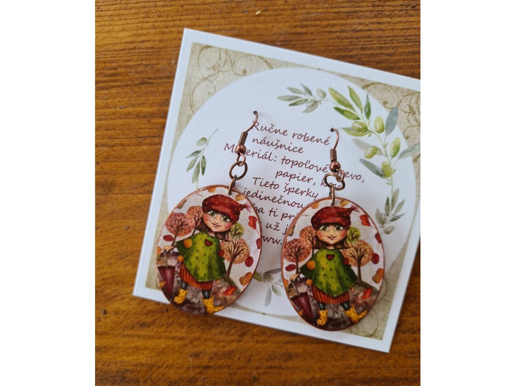 Náušnice sú veľmi ľahučké, z topoľového dreva o hrúbke 2 mm, takže ušká neťahajú. Sú zalakované, takže znesú aj pobyt v uchu počas dažďa. Len žiadne hurikány ani práčky ;)