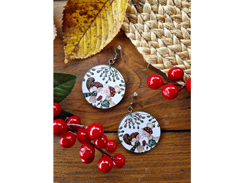 Drevené náušnice s aplikovaným pôvodným autorským motívom.