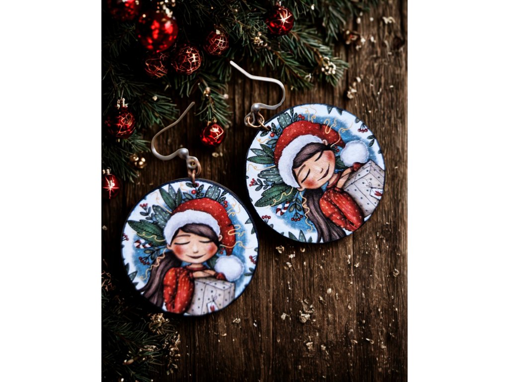 Drevené náušnice s autorskou ilustráciou Všetko po čom túžim