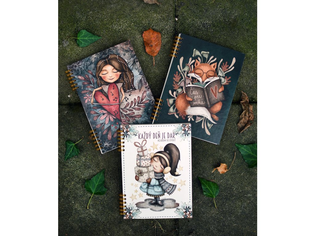 Každý jeden má 50 prázdnych listov – čo je 100 strán. Zápisník je vo formáte A5 (cca 21 x 15 cm).
