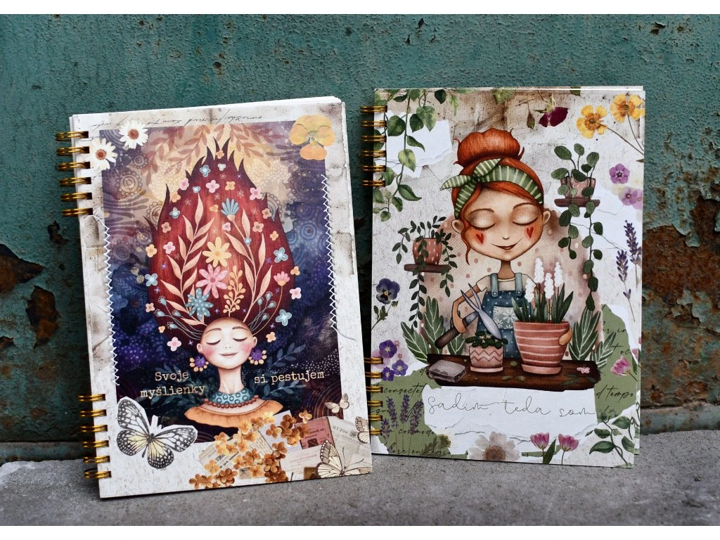 Tento má čisté strany, je bez linajok, aby si si doň mohla lepiť, kresliť plániky záhonov či s deťmi napríklad lisovať rastlinky a urobiť si z neho rozkošný záhradný a náučný herbár.