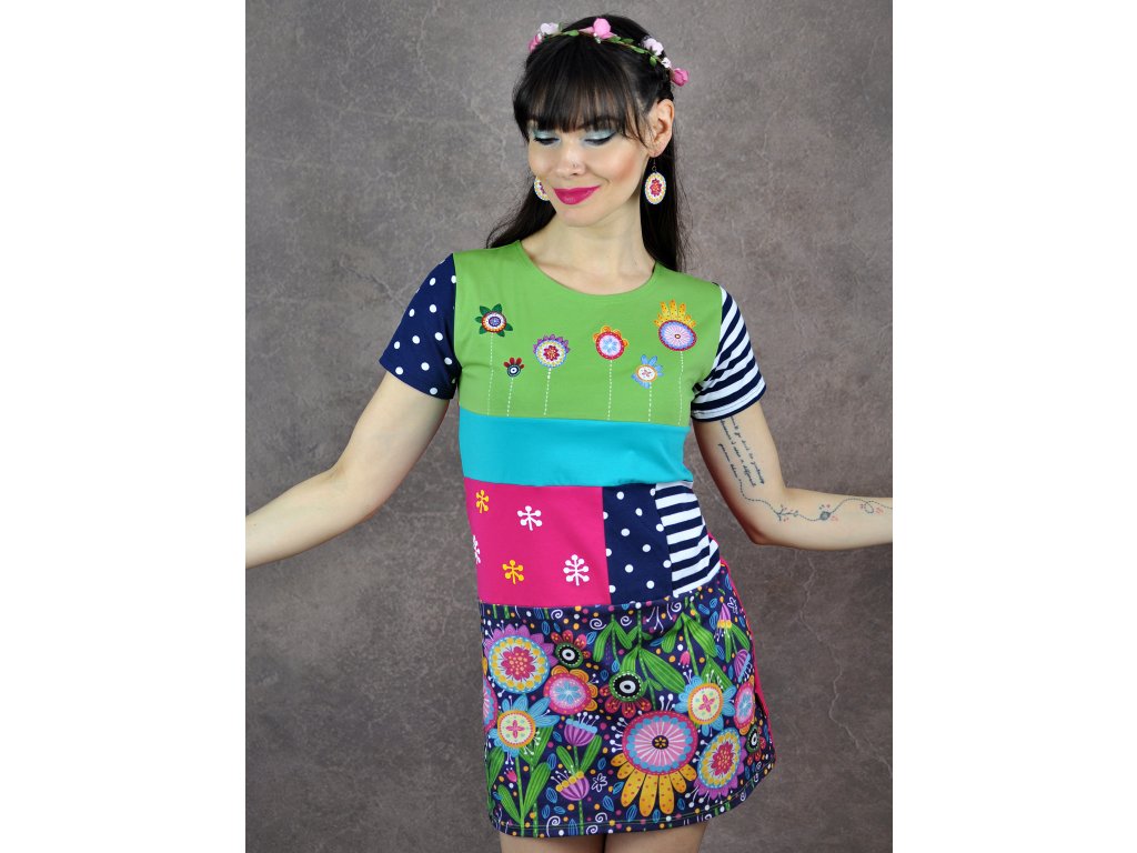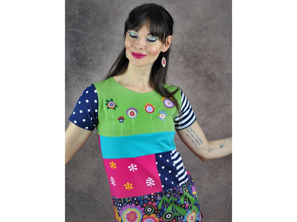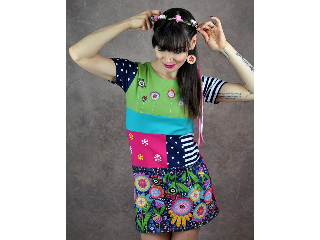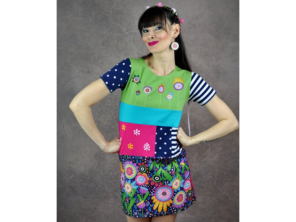 Zaujímavé letné šaty z dizajnovej látky na štýl patchwork