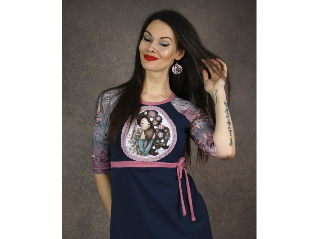 Šaty z autorskej látky s ilustráciou Mama v strihu do A