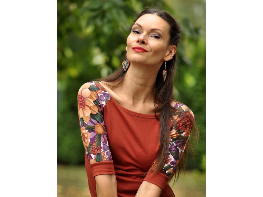 Dámske tričko v strihu raglán s 3/4 rukávom z kvetinovej dizajnovej látky