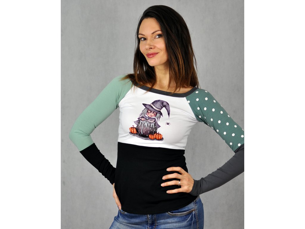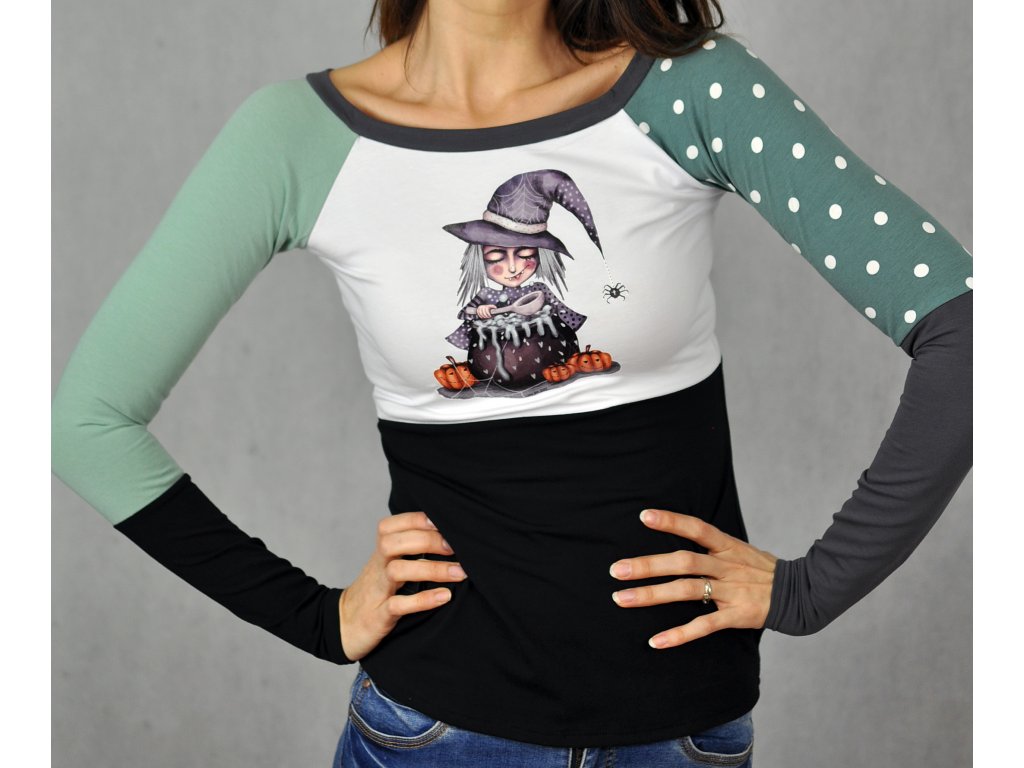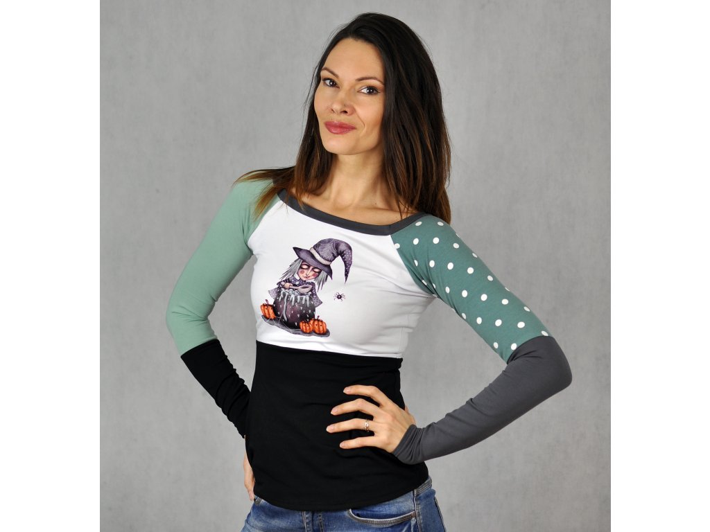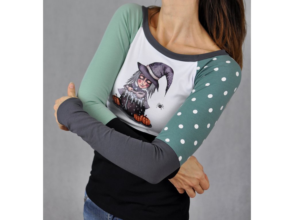 Originálne dámske tričko v strihu raglán s autorskou ilustráciou Čáry Máry