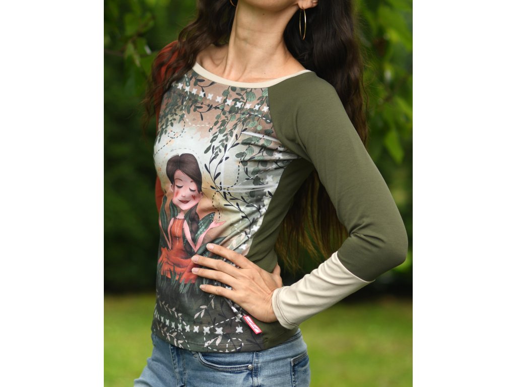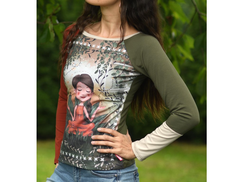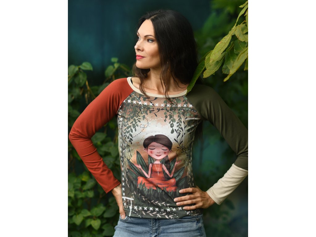 Vytvorte svoj jedinečný štýl s tričkom Jediná, ktoré kombinuje obľúbený raglánový strih s dlhými rukávmi a originálnou autorskou ilustráciou s motívom ženy v lotosovom sede - motívom pokoja a harmónie. Tento kúsok oblečenia je viac než len módny doplnok, je to umelecké dielo, ktoré môžete nosiť.