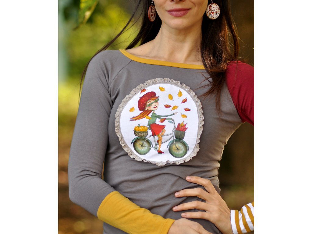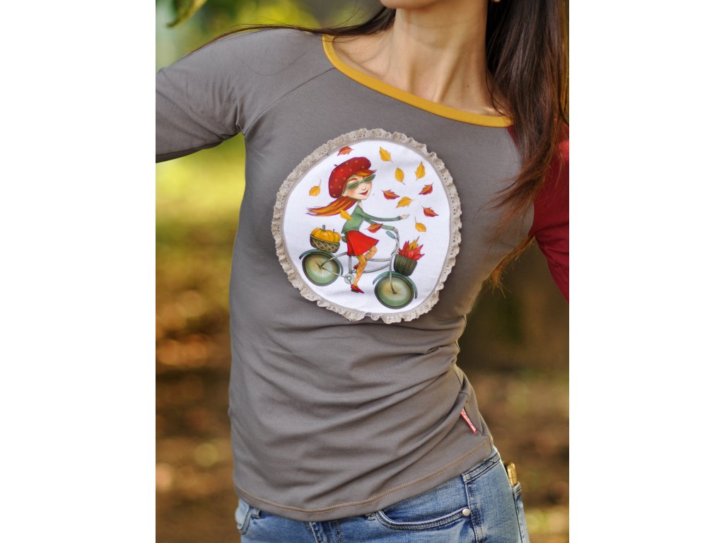 Tričko je doplnené utorskou ilustráciou - obrázkom Jesenná jazda