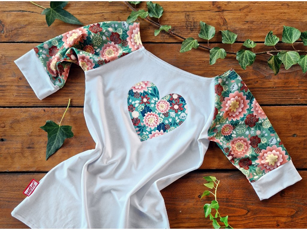 Originálne dámske tričko v strihu raglán s autorskou ilustráciou srdca