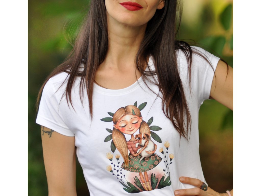 Autorský obrázok aplikovaný na tričko zo 100% bavlny