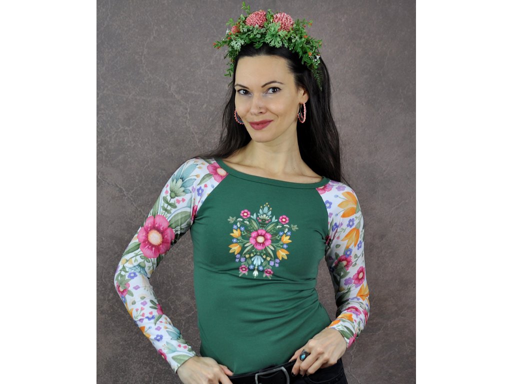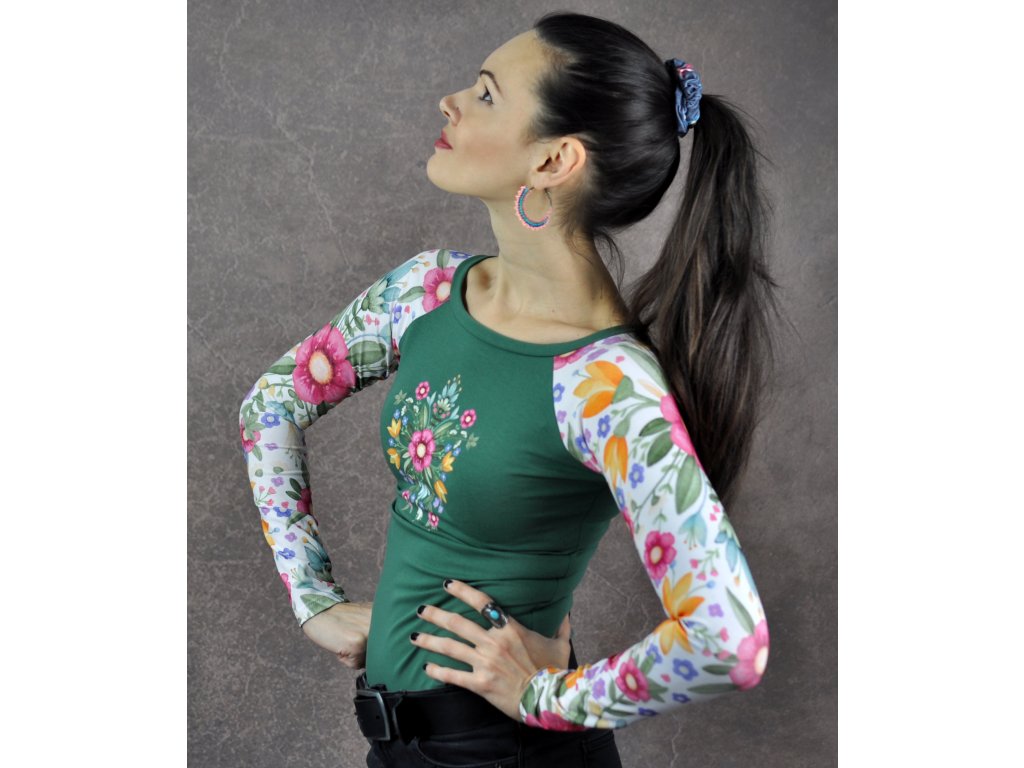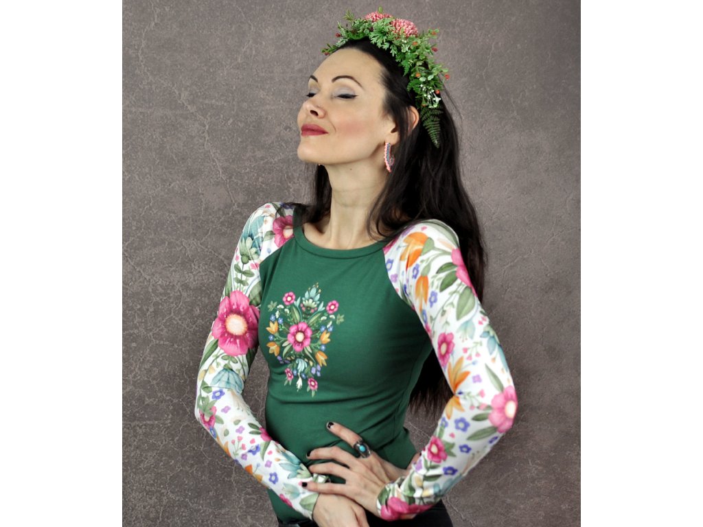 Autorský dizajn: Každý kus trička PREBÚDZANIE je jedinečný vďaka originálnej látkovej potlači, plnej farieb a kvetinových vzorov