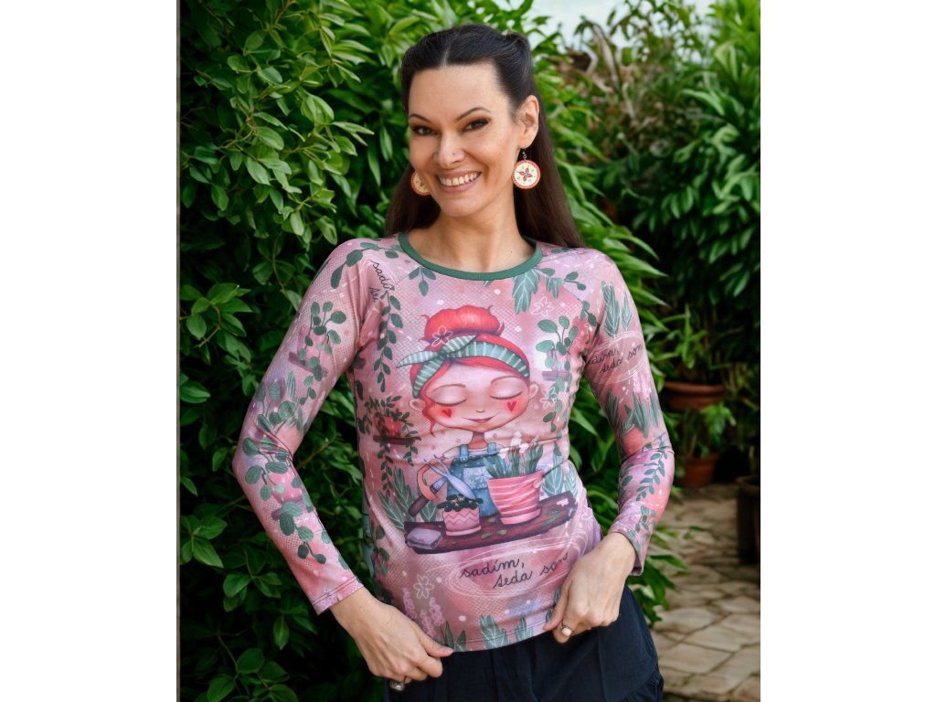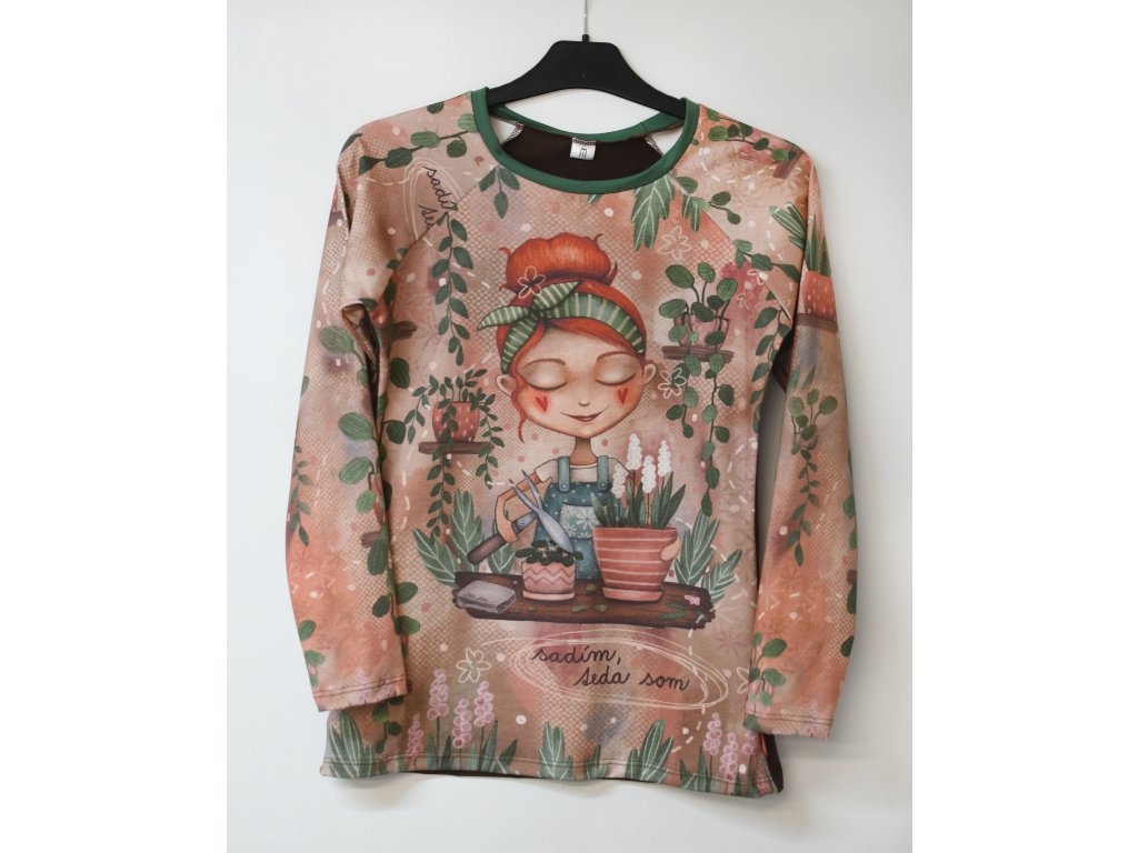 Dámske tričko z autorskej látky s ilustráciou Sadím, teda som