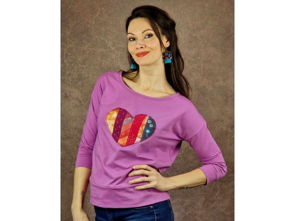 Štýlové a pohodlné tričko s výraznou textilnou aplikáciou srdiečka