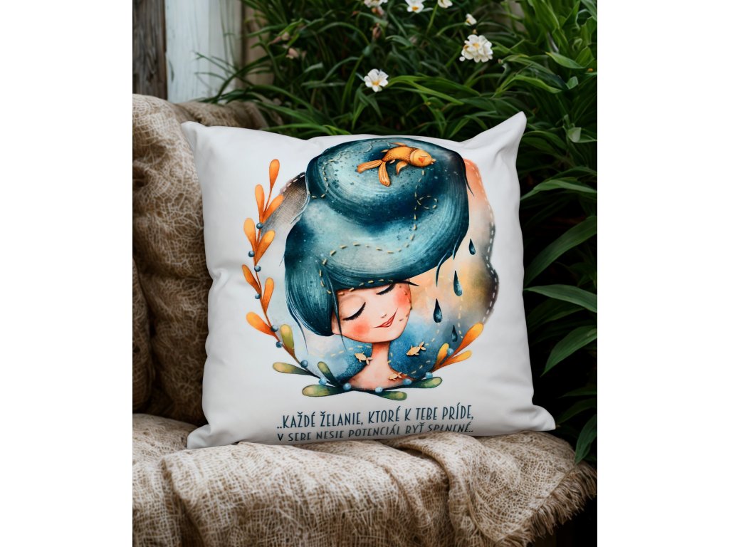 Vaša obľúbená ilustrácia Želanie s motívom textu: "Každé želanie, ktoré k tebe príde, v sebe nesie potenciál byť splnené" odteraz aj ako vankúš!