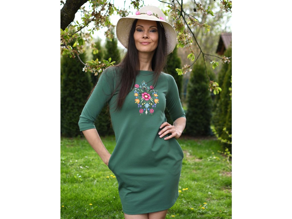 Pohodlné jednofarebné zelené šaty s vreckami z bavlneného úpletu vyššej gramáže