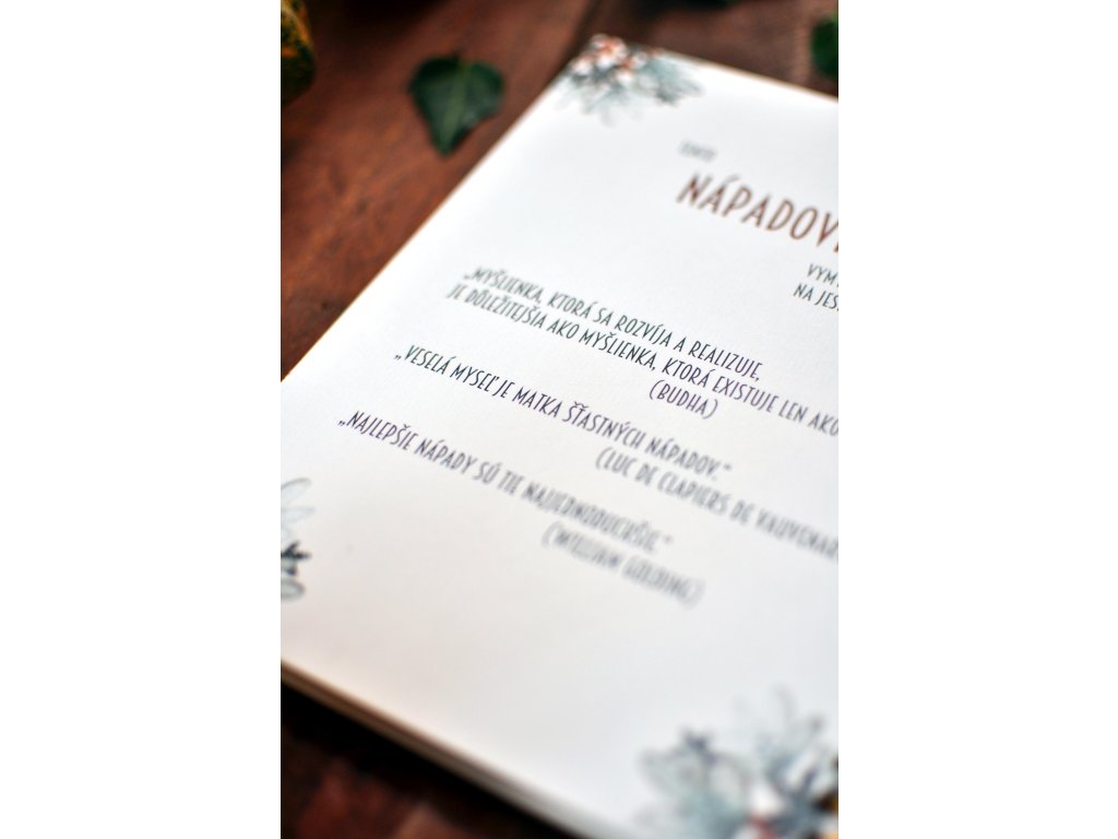 Nápadovník má 40 prázdnych listov – čo je 80 strán. Zápisník je vo formáte A5 (cca 21 x 15 cm).